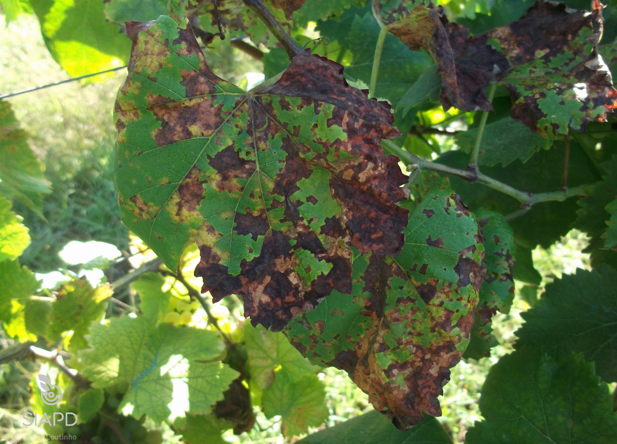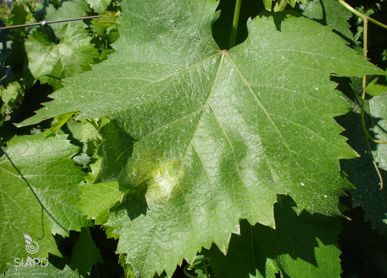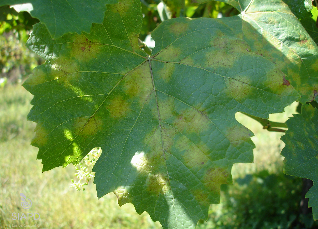 Os sintomas que P. viticola provoca na videira variam com o ciclo vegetativo da videira (Agrios, 2005).